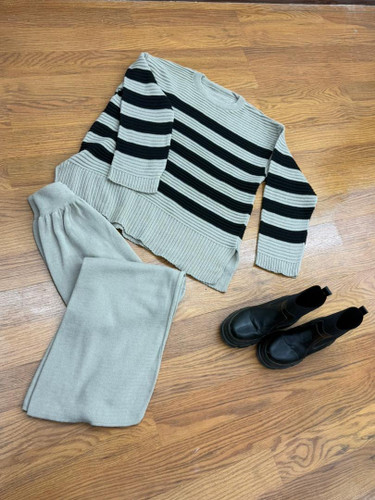 ست زنانه. استین بلند با شلوار بگ جنس بافت نرم