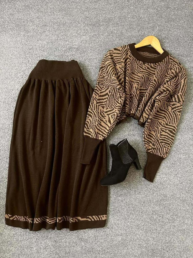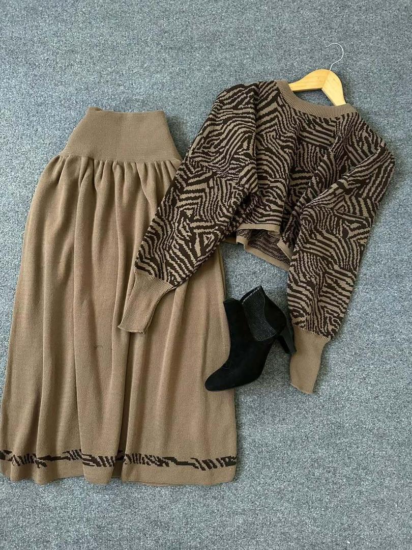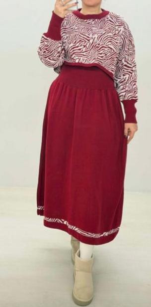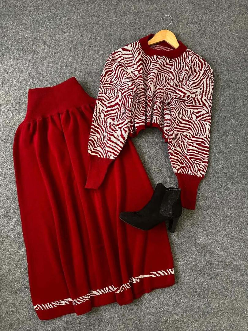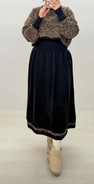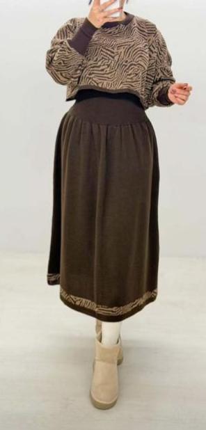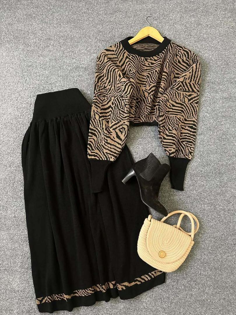 ست بافت زنانه کراپ و دامن مدل زبرا فری سایز